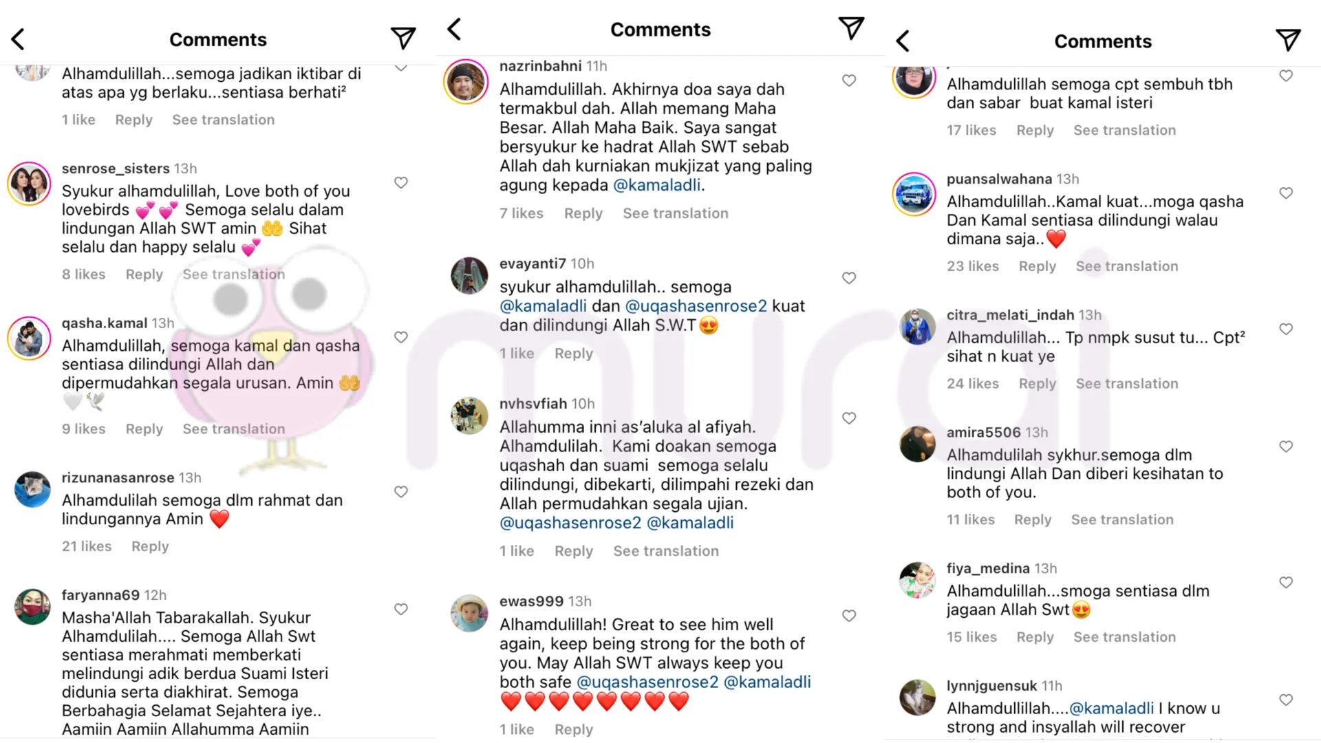 “Alhamdulillah semoga cepat sembuh dan sabar buat Kamal dan isteri.”