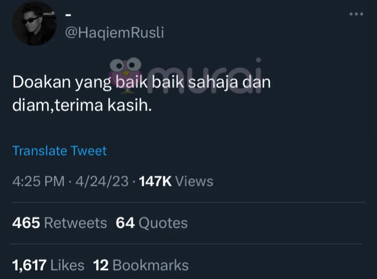 “Doakan yang baik-baik sahaja dan diam, terima kasih.”-ciapan Haqiem di Twitter