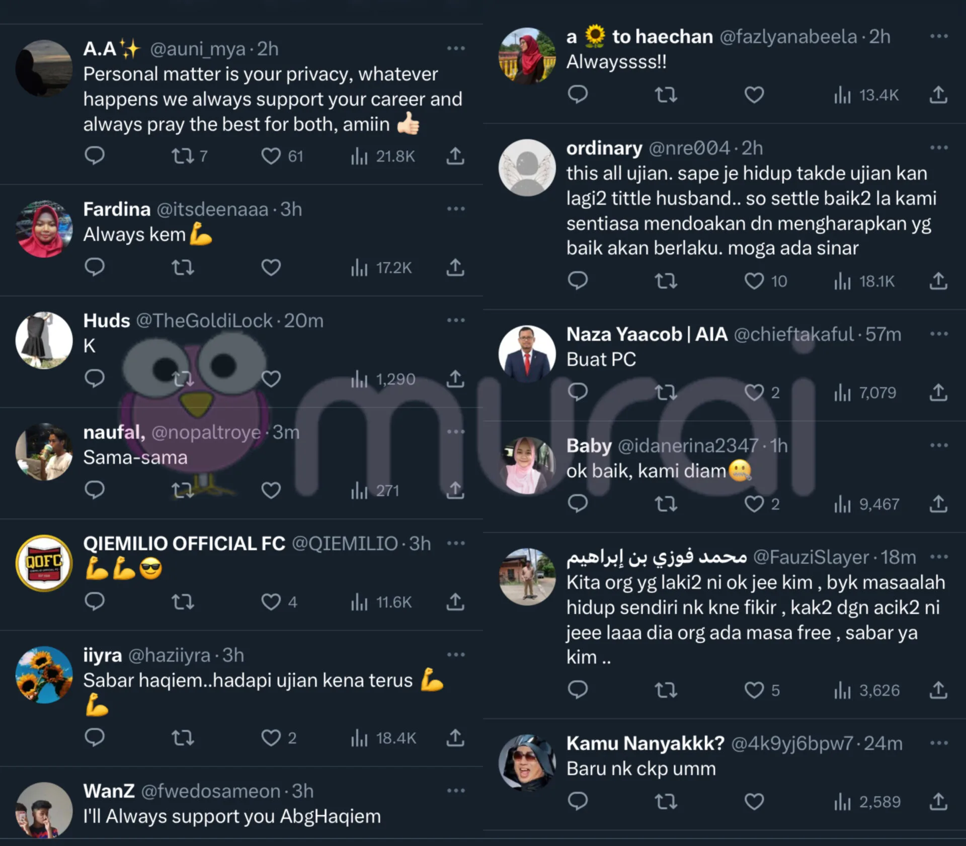 Dalam pada itu, menerusi temu bual Haqiem bersama Kosmo, dia enggan mengulas lanjut, serta meminta doa dari peminat.