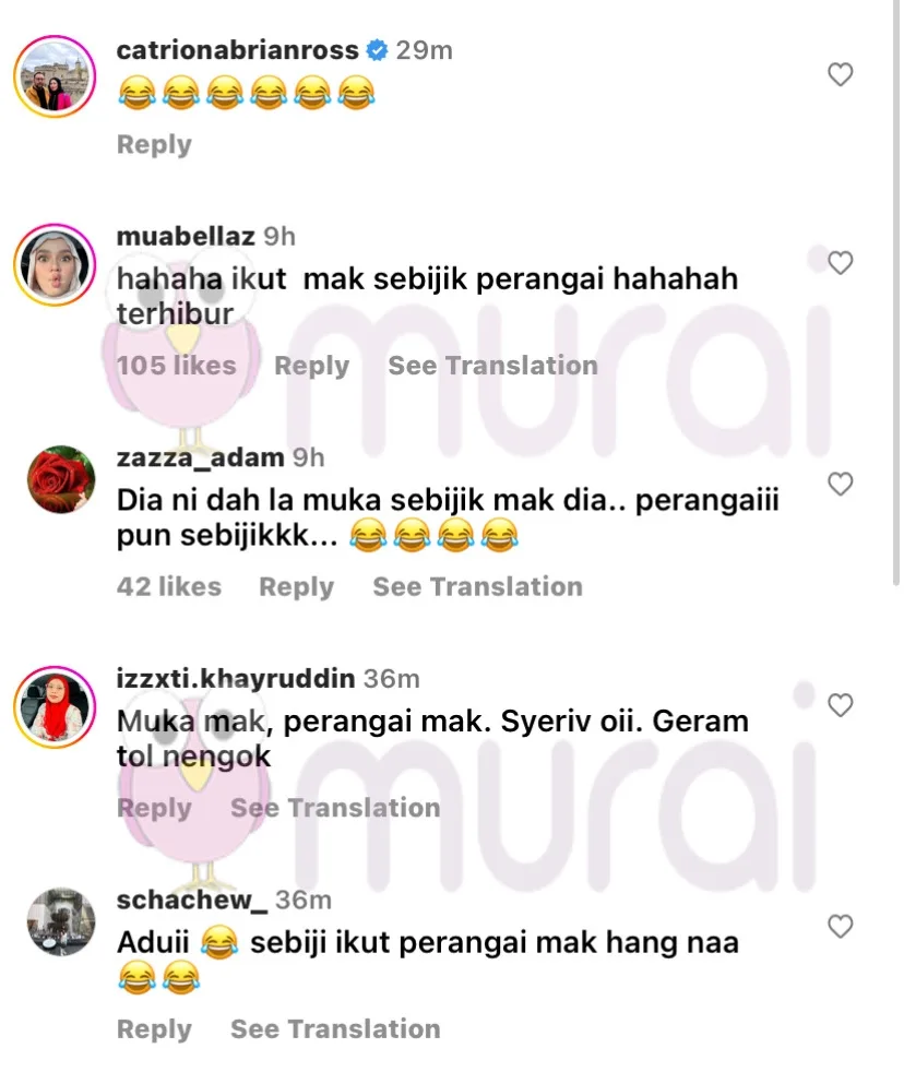 Rata-rata netizen terhibur dengan telatahnya serta menyamakan perangai “masuk air” anak dengan mak.