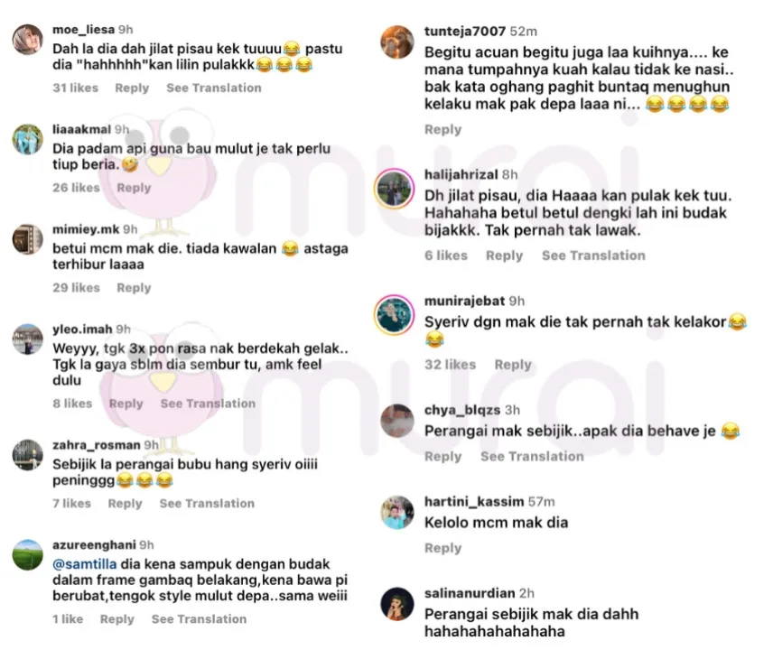 “Weyyy tengok 3 kali pon rasa nak berdekah gelak. Tengok la gaya sebelum dia sem bur tu, amik feel dulu”-tambah mereka