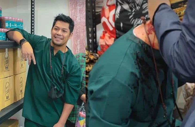 Serangan itu mengakibatkan suami kepada Uqasha Senrose ini cedera di kepala, muka dan bawah mata
