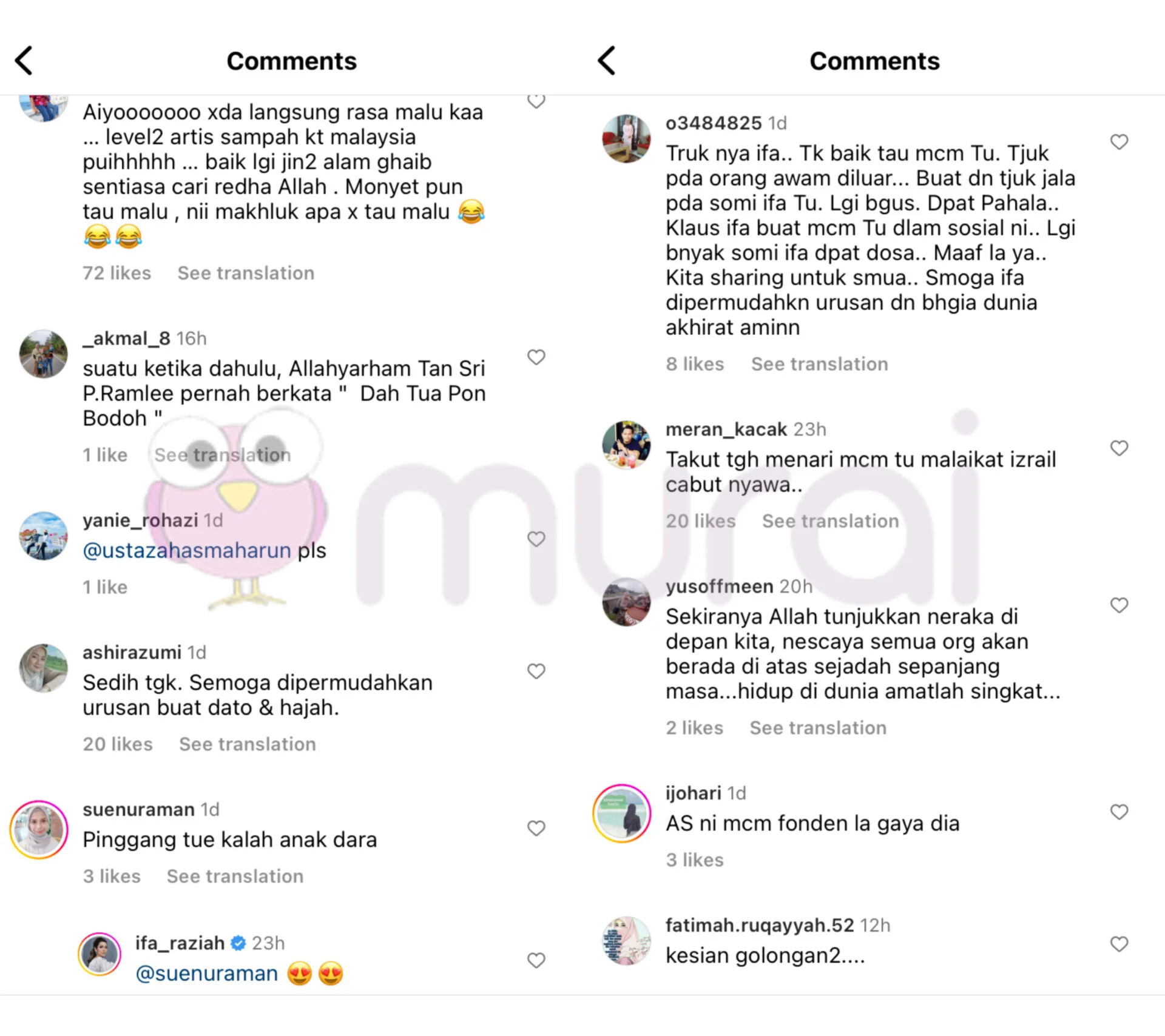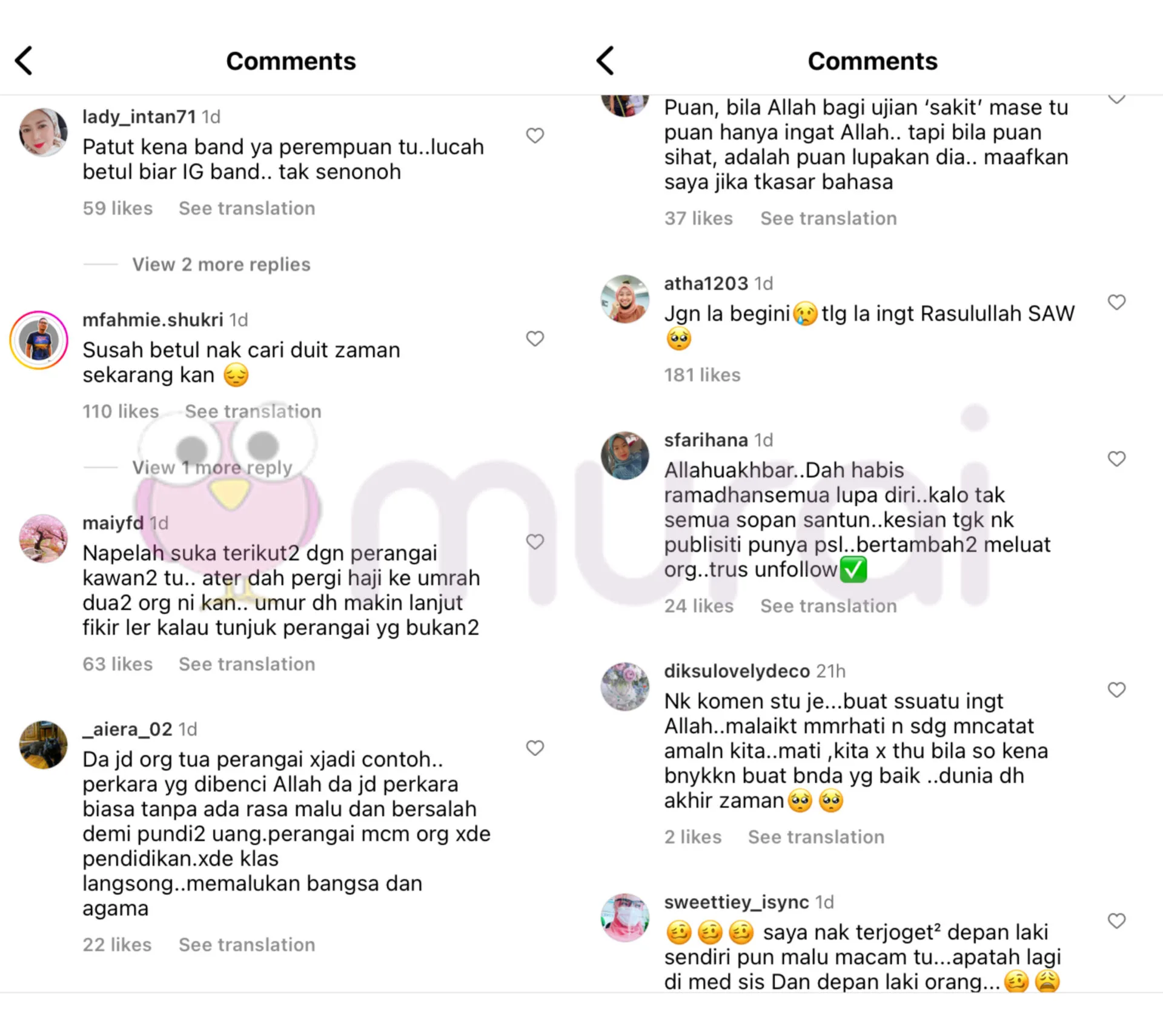 “Allahuakbar..Dah habis ramadhan semua lupa diri. Kalau tak semua sopan santun. Kesian tengok nak publisiti punya pasal. Bertambah-tambah meluat orang. Terus unfollow.”