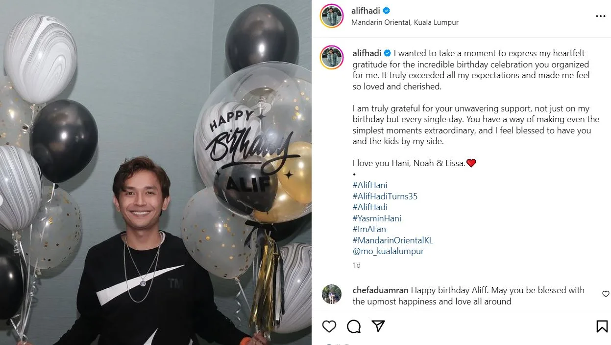 Terbaru, Alif yang baru sahaja menyambut ulang tahun kelahiran yang ke 35 berkongsikan gambar bersama Yasmin Hani dan anak-anaknya.