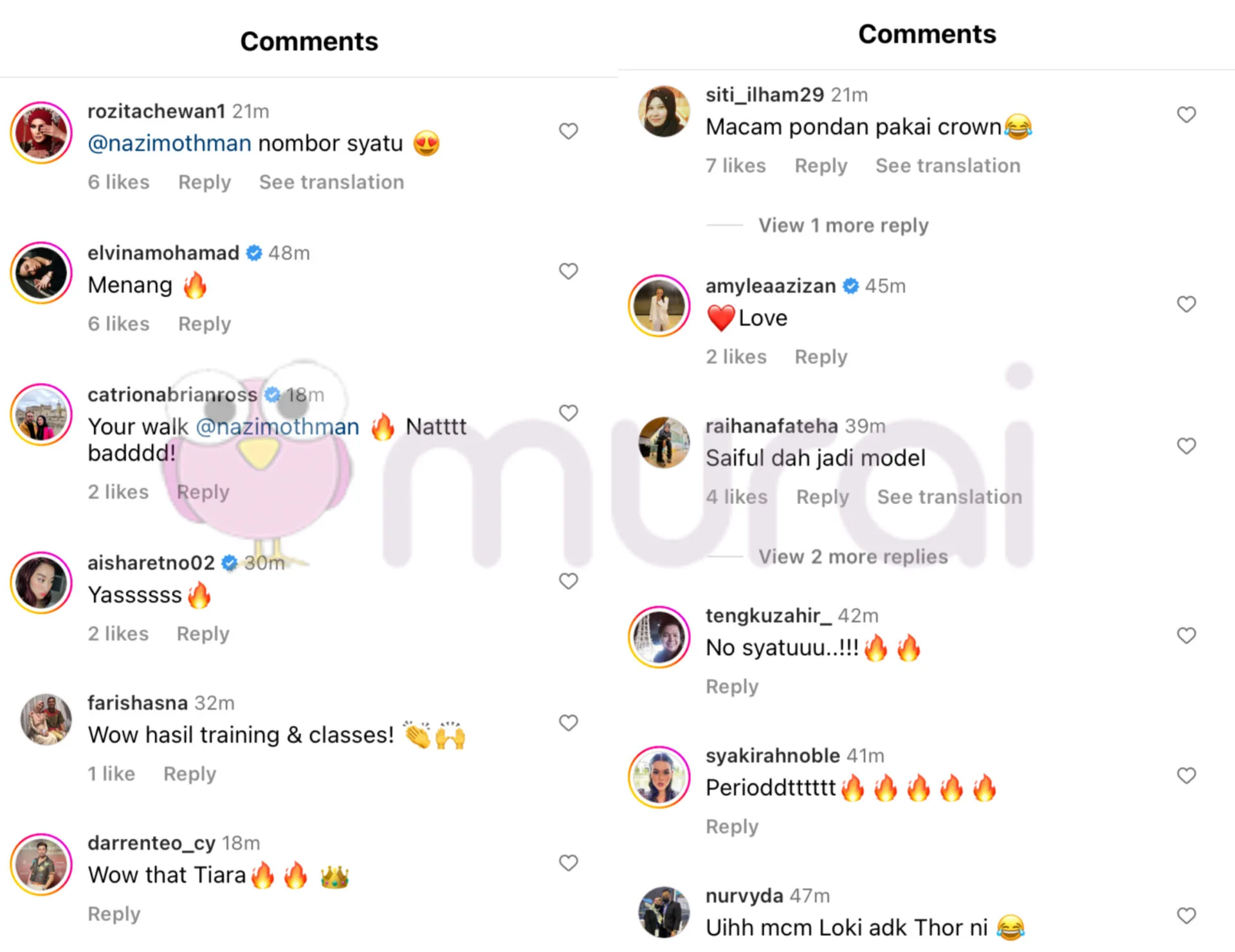 Biarpun mendapat reaksi kurang senang oleh sesetengah netizen terhadap fesyen Nazim Othman, pelakon ini tetap mendapat pujian oleh rakan selebriti serta netizen yang terpukau melihat ‘catwalk’ di acara pertunjukan fesyen, semalam.
