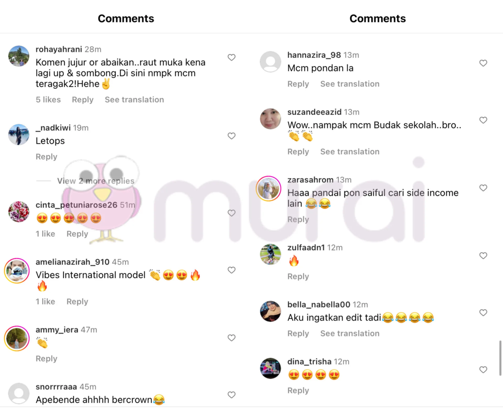 Menjengah ke ruangan komen, rata-rata netizen dan rakan selebriti dilihat memberikan pelbagai reaksi mereka, malah ada yang menegur penampilan pelakon ini menyerupai ‘pond*n’.