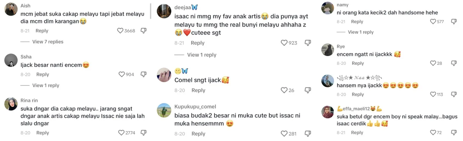 “Suka dengar dia cakap melayu, jarang sangat dengar anak artis cakap melayu isaac ni saja lah selalu dengar”