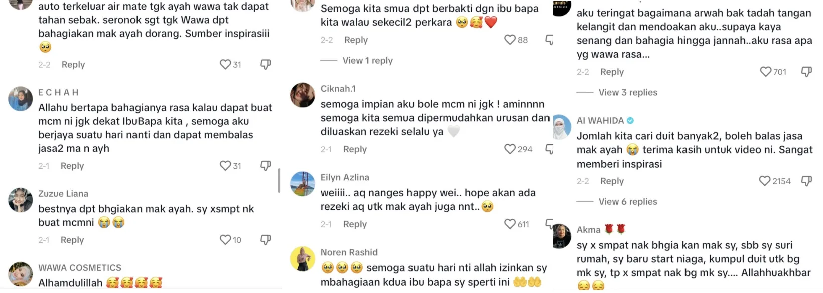“Weii aku nangis happy wei, hope akan ada rezeki aku untuk mak ayah juga nanti”-kata mereka