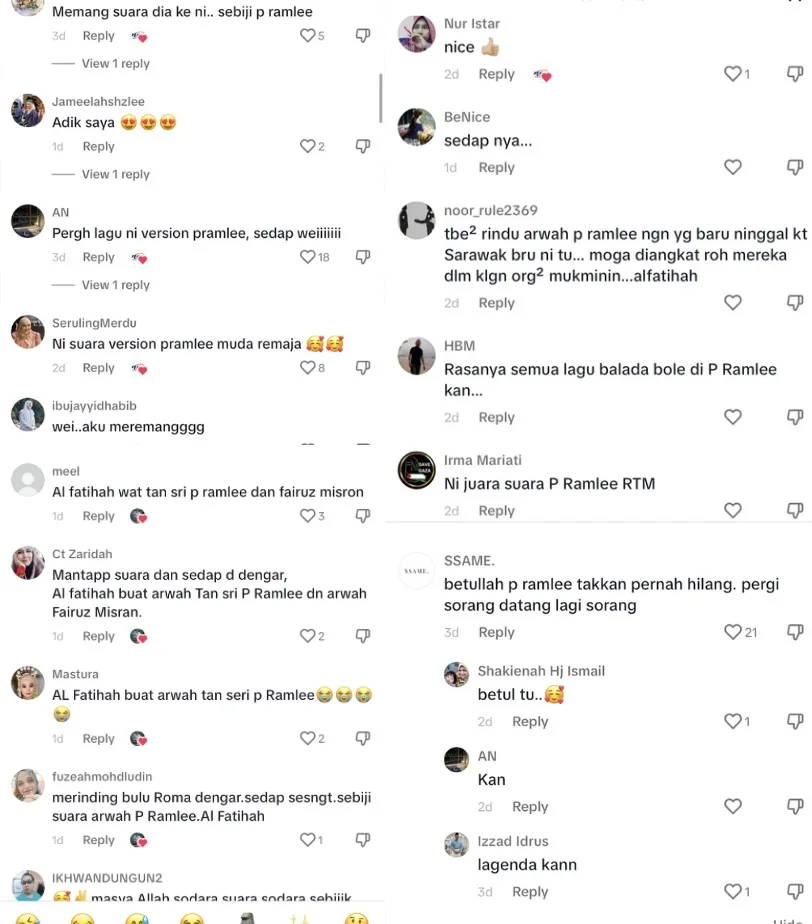 “Ni suara version P.Ramlee muda remaja, meremang dengar”-kata mereka