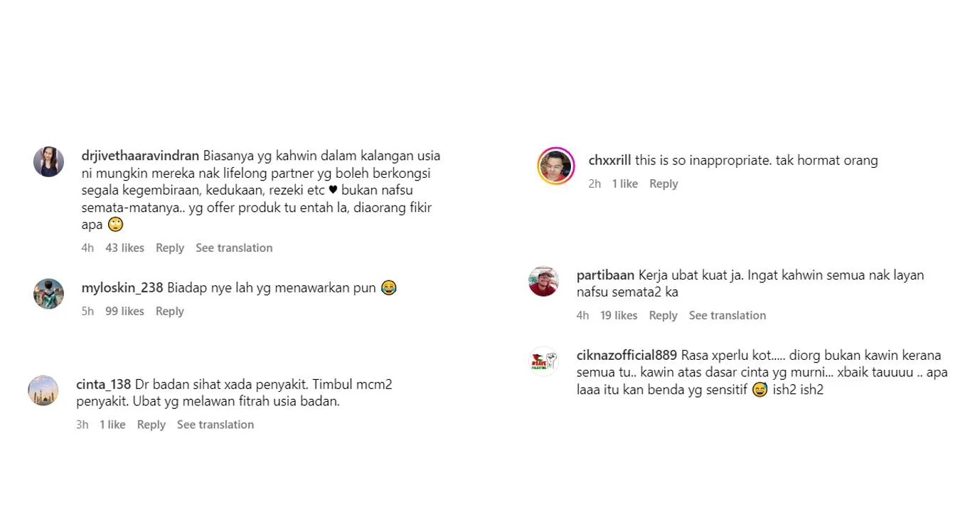 Malah netizen juga turut menjelaskan bahawa perkahwinan pada usia Sabri Yunus ketika itu, kebanyakkannya bukanlah hanya memandang nafsu semata-mata, tapi lebih kepada untuk berkongsikan kegembiraan, kedukaan, rezeki dan sebagainya.