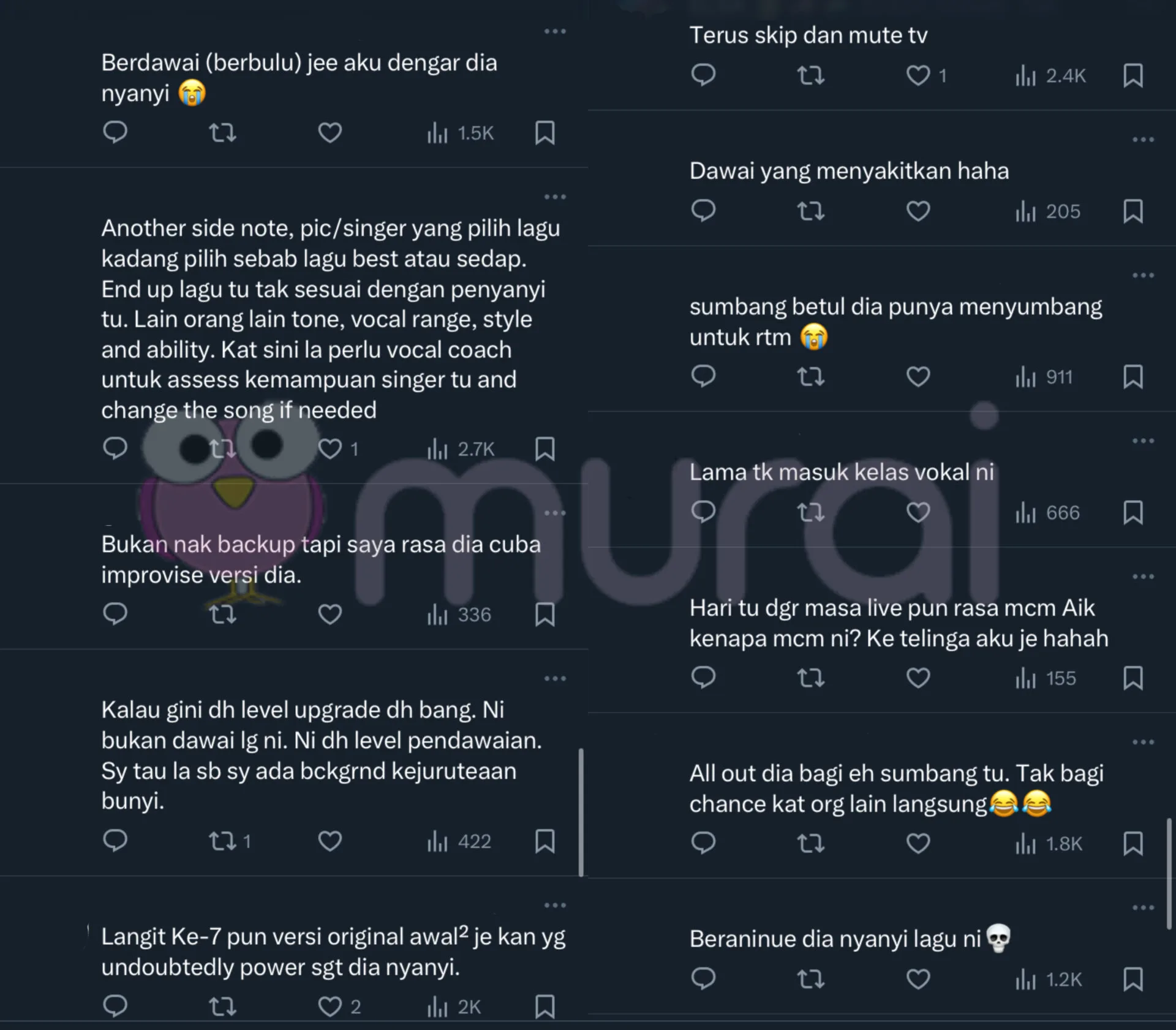 “Dawai versi apa ni? Hahaha sebab tu la dia One Hit Wonder, lagu yang dia boleh nyanyi pun Langit Ke-7 je.”-ciapan netizen di X