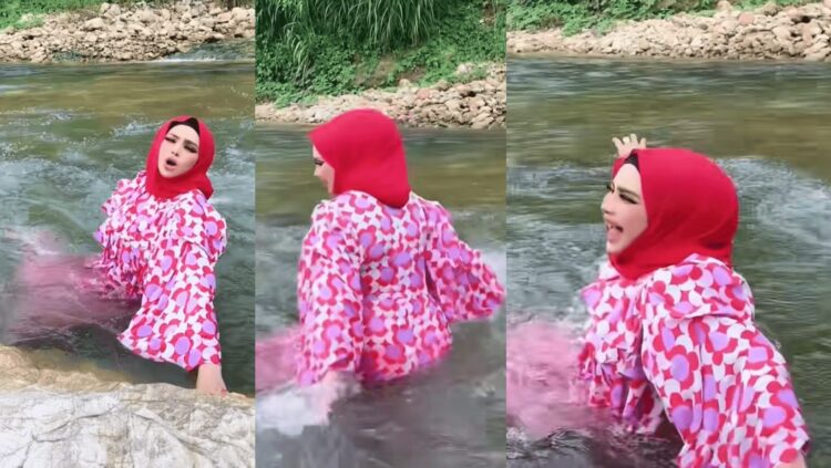 Di dalam video berkenaan, memaparkan Che Ta yang memakai busana berwarna merah jambu yang besar dan sedang berendam di dalam air sungai.