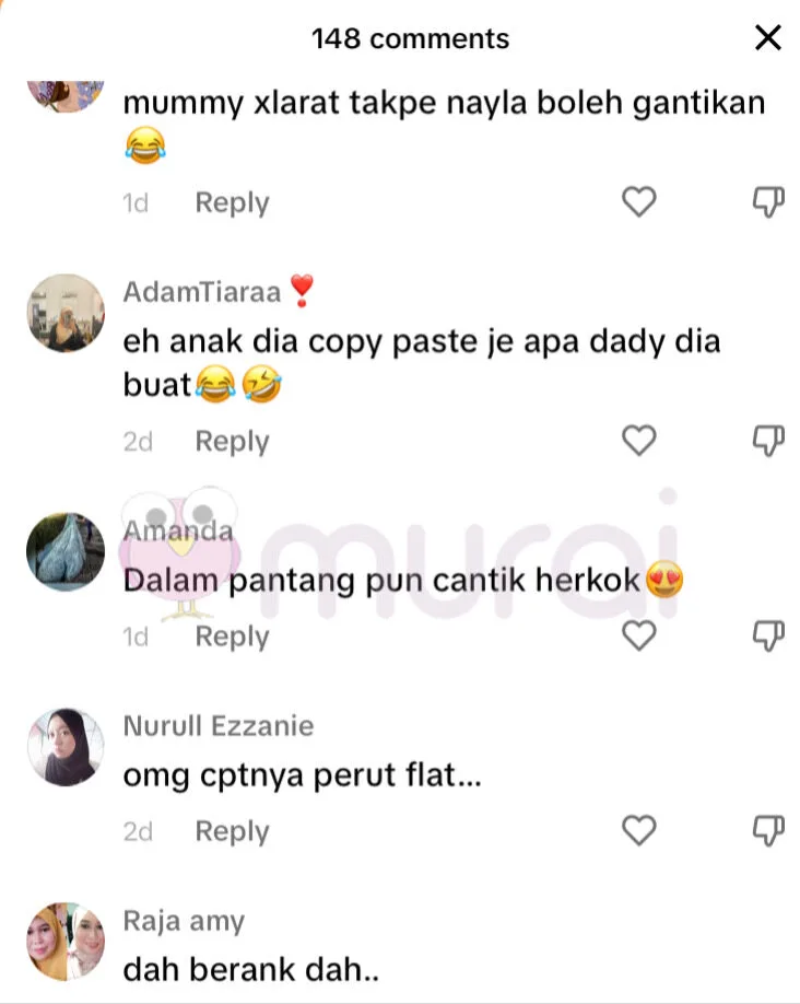 Di sebalik ramai yang terhibur melihat gelagat anak perempuan mereka, rata-rata netizen turut memuji kecantikan pelakon dan penyanyi berkenaan biarpun baru bersalin dan dalam proses berpantang itu.