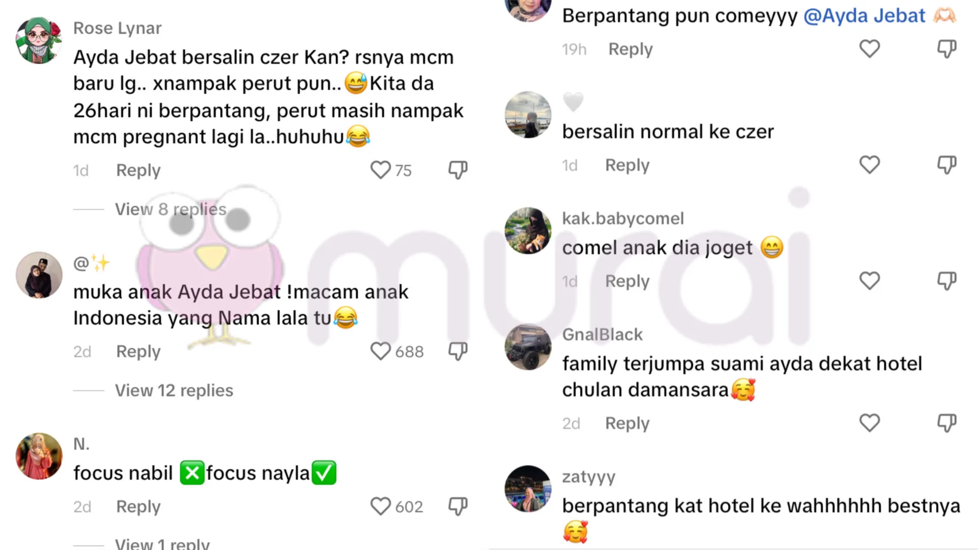 “Bila suami cuba goda bini tengah berpantang. Jangan buat hal eh!!! Baby Nayla pun kemain join dadaa ?.”-kapsyen Ayda Jebat di TikTok