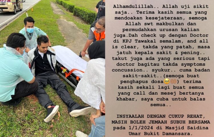 Alif juga turut berkongsi kebimbangan jika terdapat perkara serius daripada kemalangan tersebut dan turut bersyukur kerana hanya sakit badan sahaja.