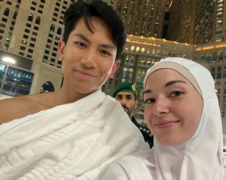 Putera Mateen menerusi hantaran di Instagram, yang lengkap mengenakan ihram turut memaparkan ‘selfie’ bersama Dayang Anisha yang anggun memakai telekung berwarna putih sewaktu berada di Tanah Suci Mekah.
