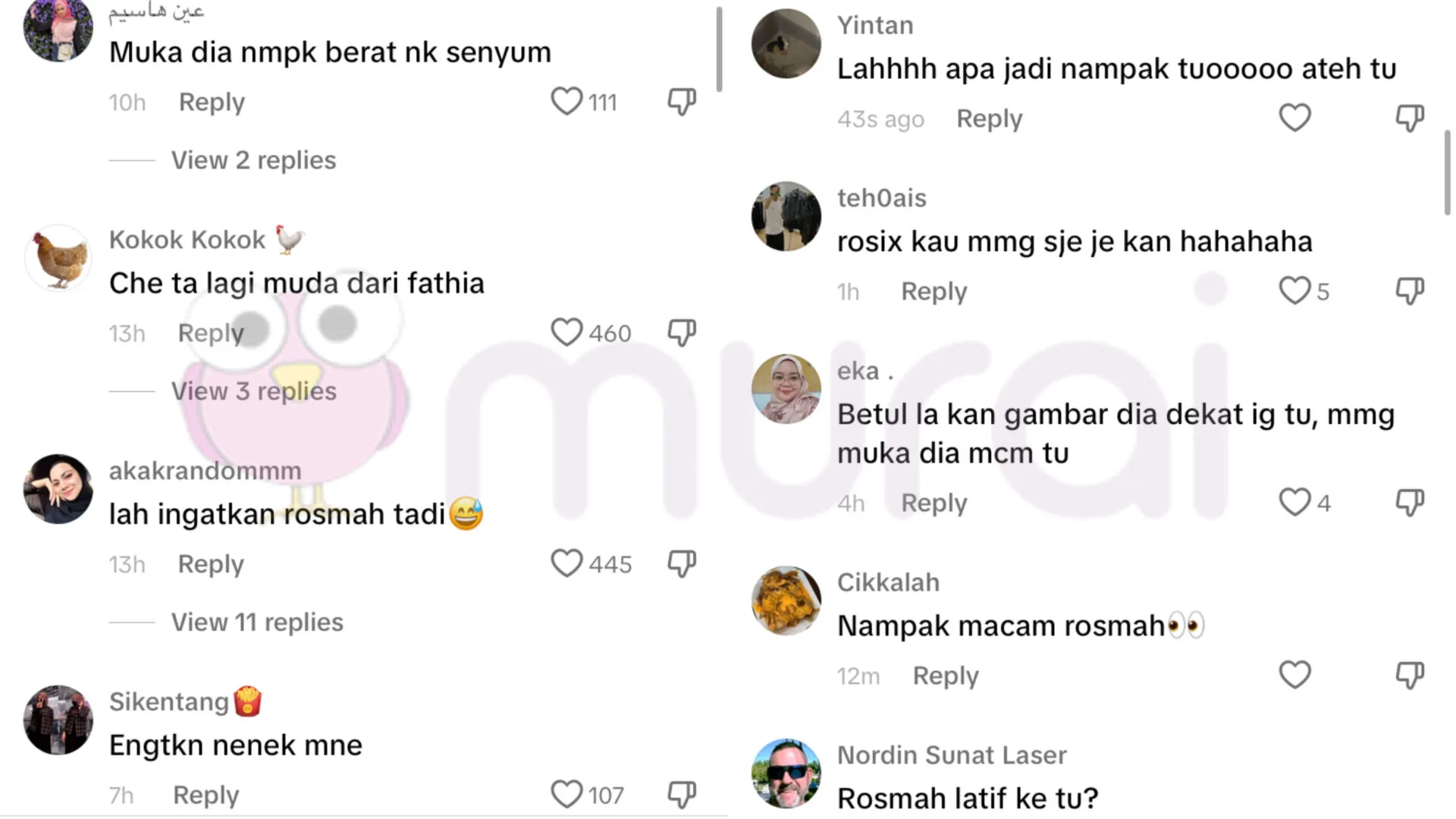 Menjengah ruangan komen, lain pula reaksi netizen yang mempersoalkan wajah Fathia yang kelihatan lebih berusia biarpun baru memasuki usia 36 tahun berbanding Rozita Che Wan yang kelihatan seperti anak dara walhah sudah menginjak usia 50-an.