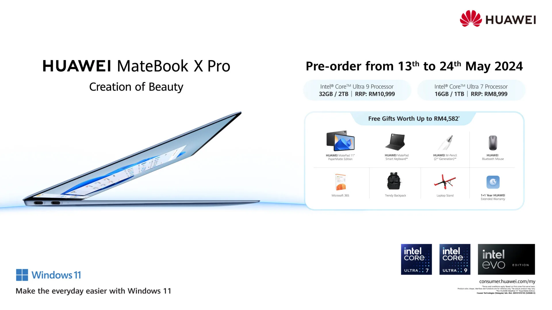 Harga untuk HUAWEI MateBook X Pro (2024) bermula dari RM8,999 hingga RM10,999, dan ia tersedia untuk pra-pesanan dari 14 Mei hingga 24 Mei 2024.