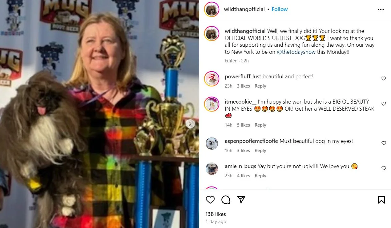Anjing Pekingese berusia lapan tahun yang diberi nama Wild Thang itu memenangi Pertandingan Anjing Terhodoh Dunia 2024 di California, pada Jumaat lepas.