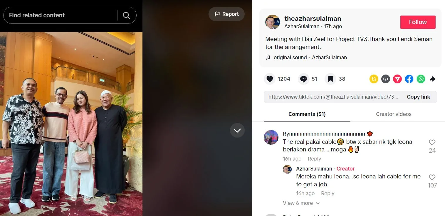 Menerusi video yang dimuat naik di Tiktok, Azhar menyatakan bahawa dia sedang mengadakan mesyuarat bersama Haji Zeel untuk sebuah projek di TV3.