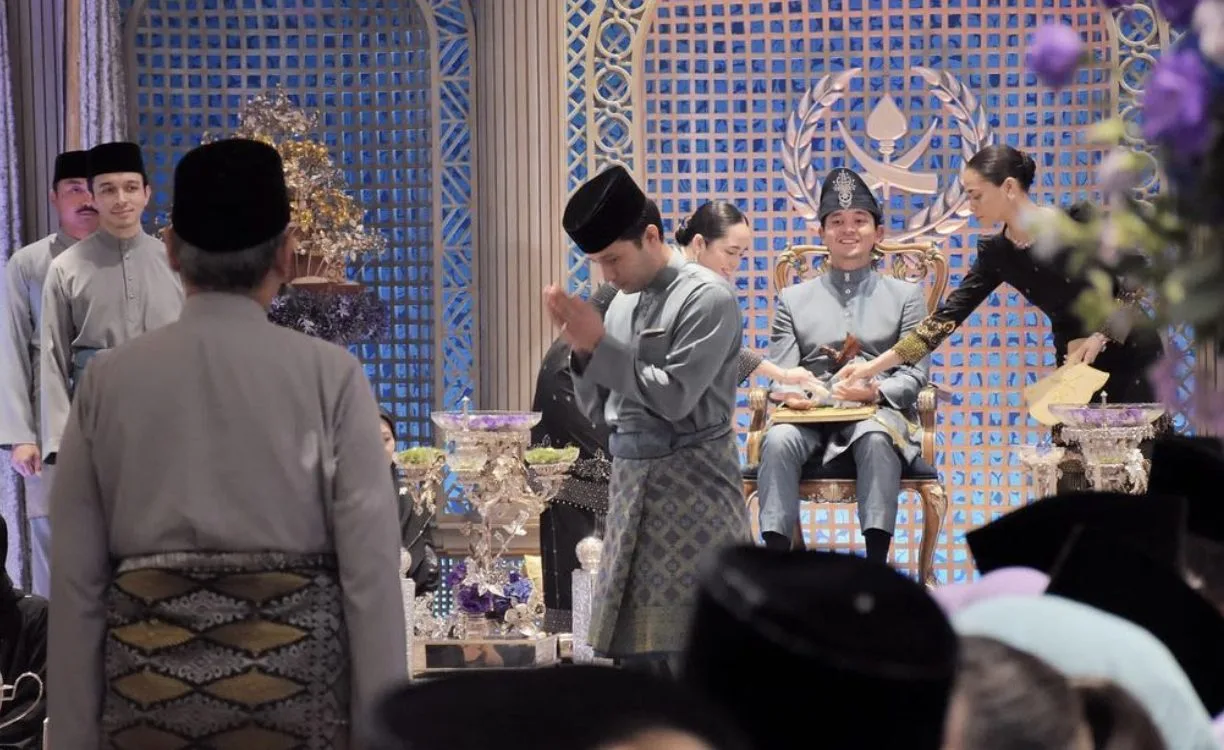 Ekspresi wajahnya yang sedikit tegang dan teliti menunjukkan mungkin dia sedikit cemas ketika menunggu masa untuk mengambil bahagian dalam upacara yang penuh adat dan bermakna itu.