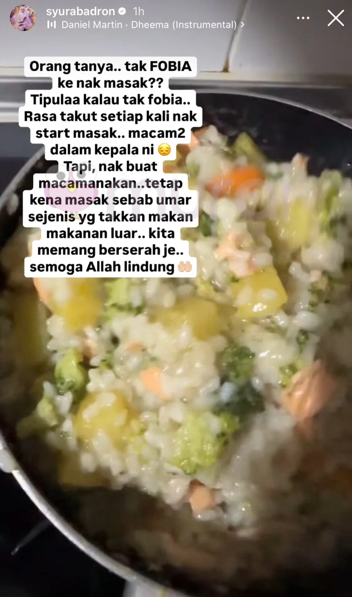 Rasa takut setiap kali nak mula masak. Macam-macam dalam kepala ni.”-kongsi Syura di Insta Stories