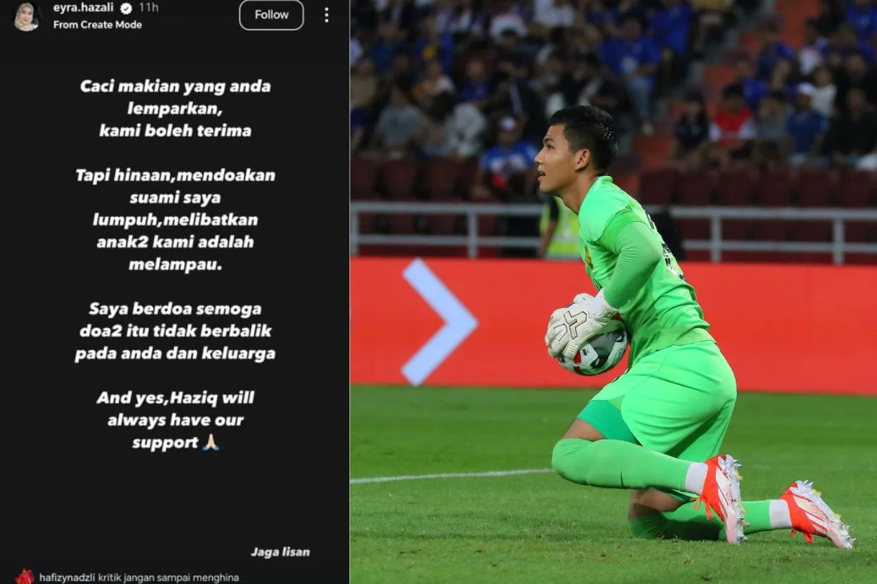 Isteri mana yang tidak sedih apabila melihat suami dihina dan didoakan dengan perkara yang tidak baik? Begitulah perasaan yang pasti dirasai oleh Eyra Hazali, yang tidak teragak-agak tampil mempertahankan suaminya, Hazid Nadzli, penjaga gawang skuad Harimau Malaya.
