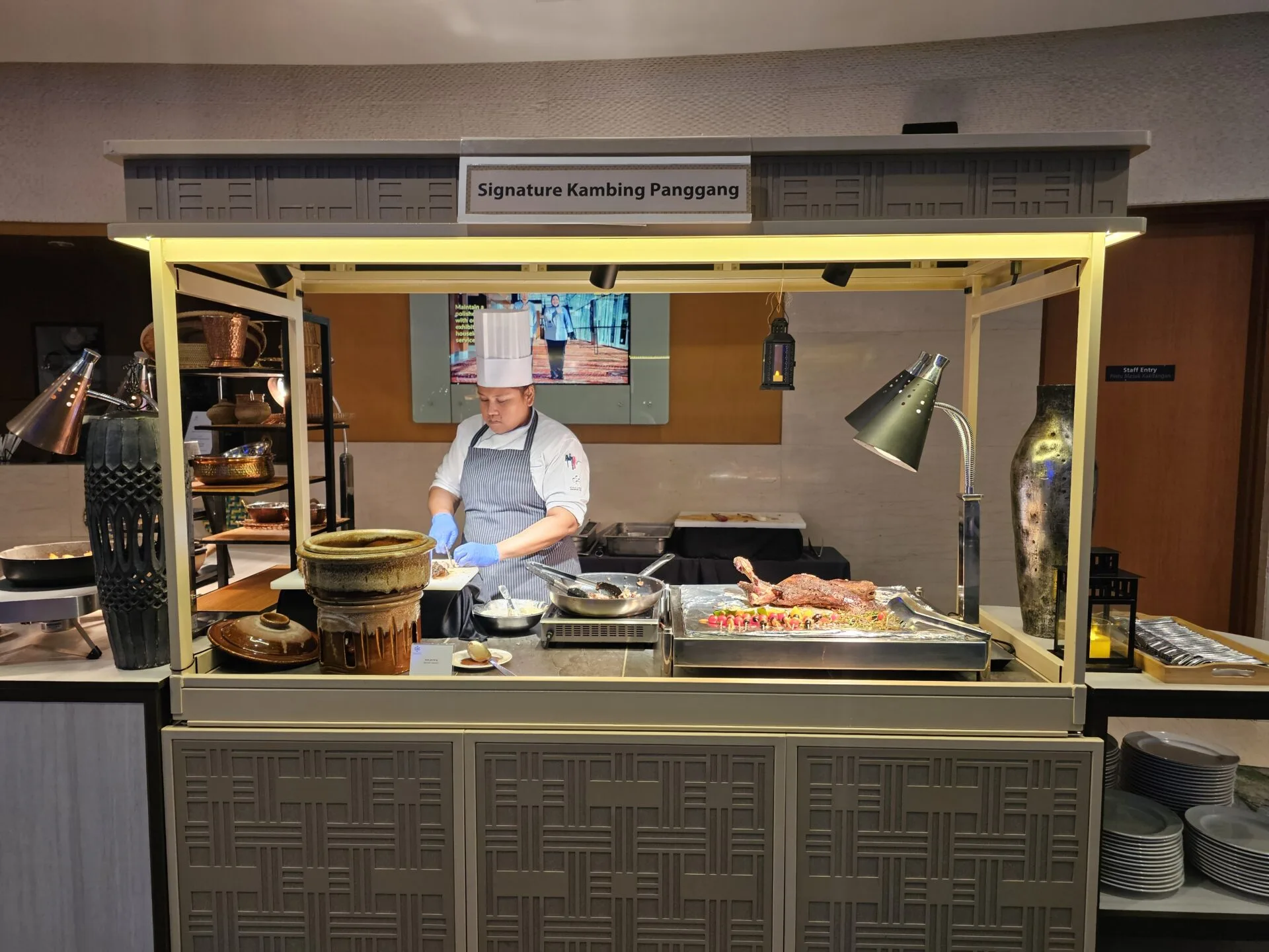 Antara tarikan utama di bufet ini ialah Kambing Panggang ala Harissa yang kaya dengan rempah serta Tulang Rawan Asam Pedas Salai yang penuh dengan rasa dan aroma yang menggoda. Kedua-dua hidangan ini pasti menjadi kegemaran buat penggemar daging.