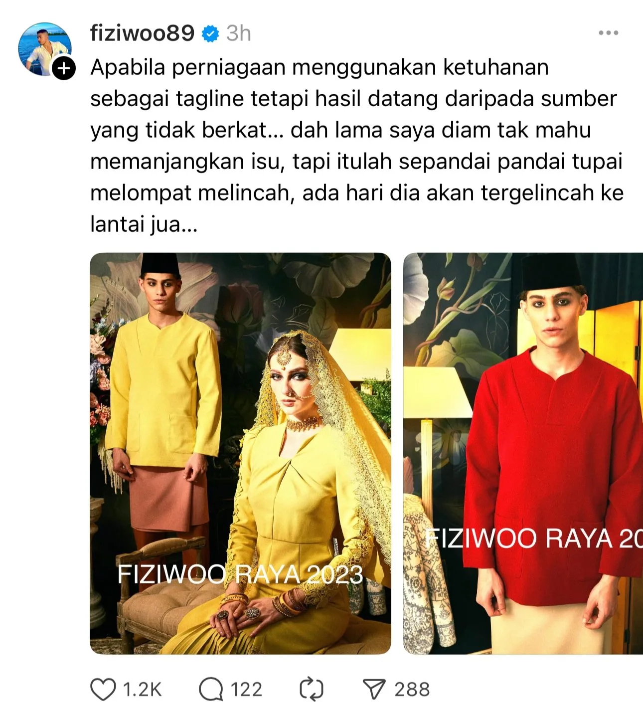 Fiziwoo menerusi hantaran di Thread, menyatakan bahawa dia sudah lama berdiam diri untuk tidak mahu memanjangkan isu tersebut, namun lambat-laun pihak terlibat akan ‘tergelincah ke lantai’ jua.