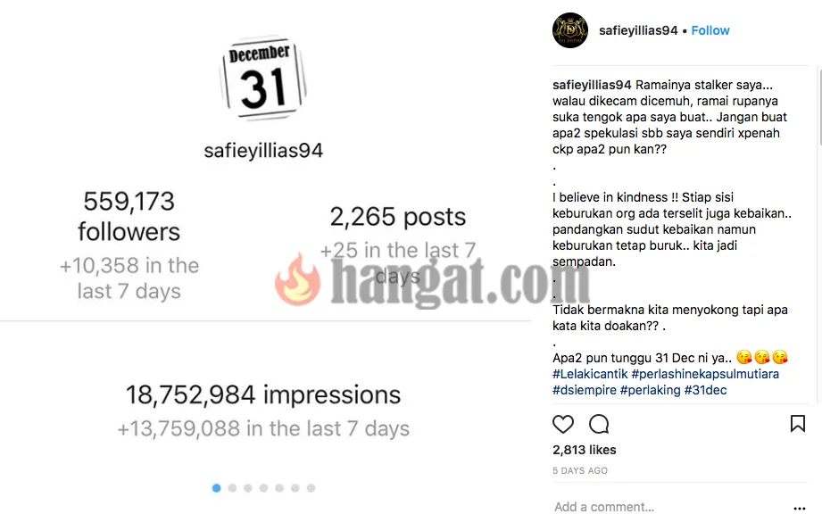 Sejak itu pelbagai kecaman hebat diterima oleh Safiey kerana sebelum ini dia telah berjanji telah insaf dan nekad akan berubah. Tidak tahan dengan pelbagai tuduhan yang dilemparkan, Safiey berjanji pada 31 Disember yang lalu, dia akan membuat satu pengumumuan penting dan menjawab segala tuduhan yang diterima. Sebaliknya tiada pengumuman yang dibuat dan Safiey telah pun memadam Instagramnya.