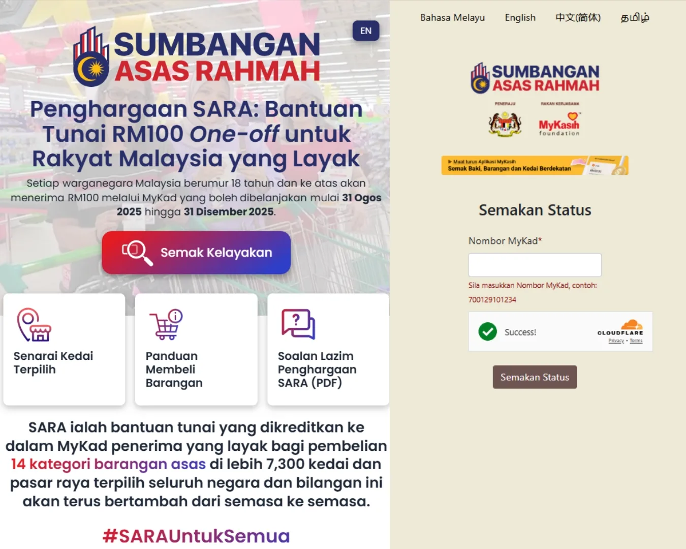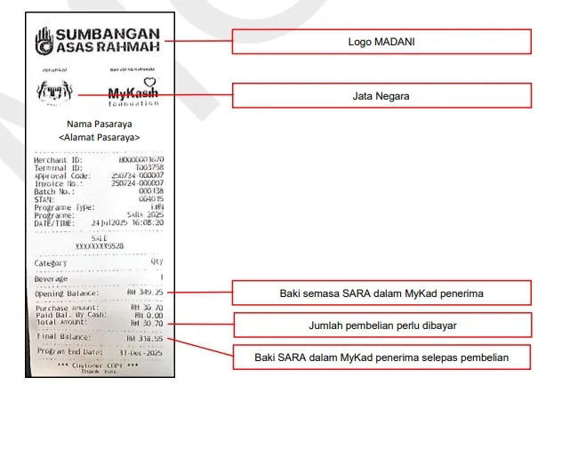 - Tunjukkan MyKad di kaunter pembayaran, bertujuan untuk pengesahan penerima SARA.