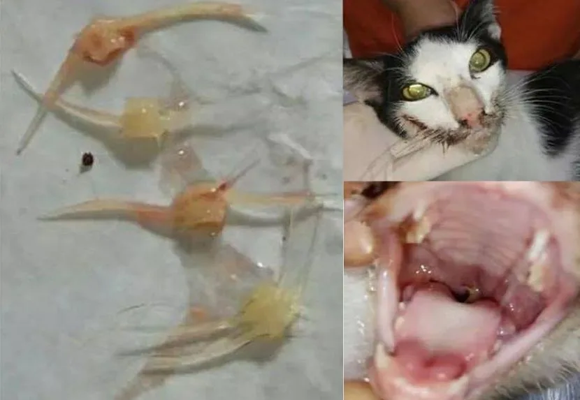 Risiko tulang yang dimakan oleh kucing akan tersangkut dibahagian gigi, gusi, lelangit dan tekak haiwan itu juga sangat tinggi.