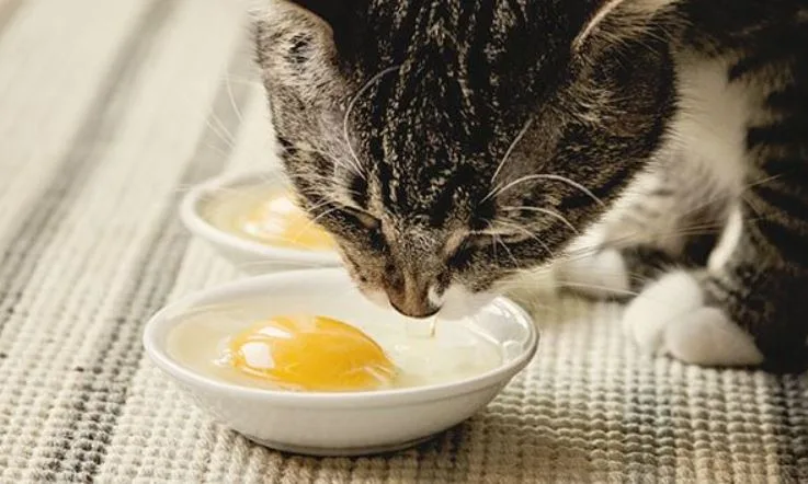Telur adalah sumber protein yang sangat baik bukan sahaja untuk manusia tetapi juga pada kucing. Namun kucing hanya boleh makan bahagian kuning telur sahaja kerana putih telur mengandungi avidin yang berfungsi melindungi pertumbuhan bakteria pengganggu kuning telur.