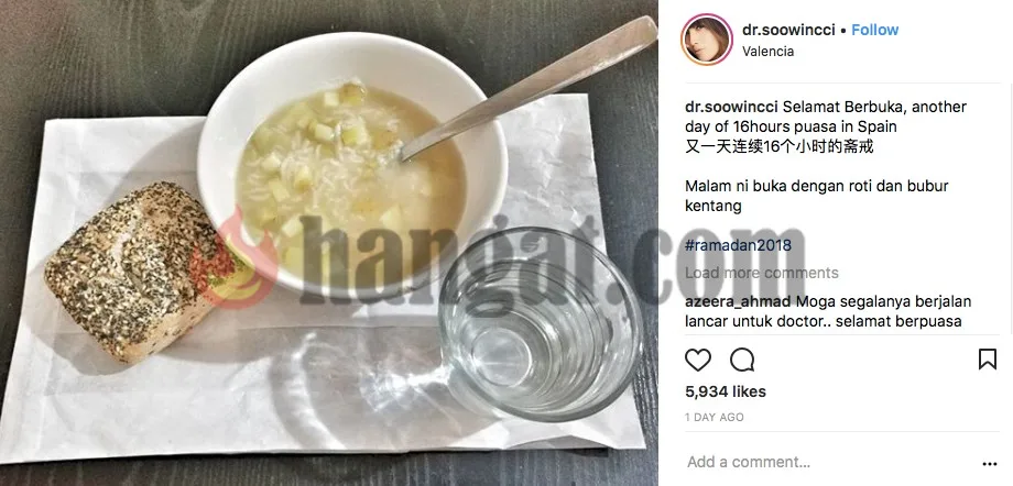 Rasanya ini adalah tahun keenam buat Dr Soo Wincci berpuasa. Menariknya lagi, selebriti yang juga seorang chef ini sudah berpuasa sehari lebih awal memandangkan dia kini berada di Sepanyol.