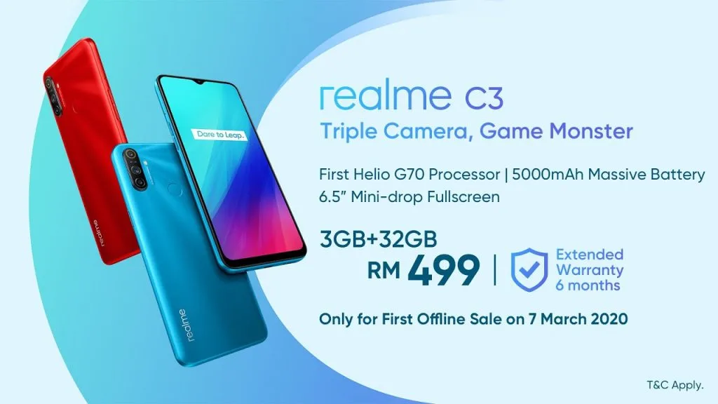 REALME C3 ini juga dilengkapi dengan sensor cap jari yang dipasang pada belakang peranti dan ia juga menyokong Face Unlock. Dilengkapi bateri 5,000mAh yang lebih besar 25% daripada Realme C2 dan menyokong pengisian cepat 10 Watt.