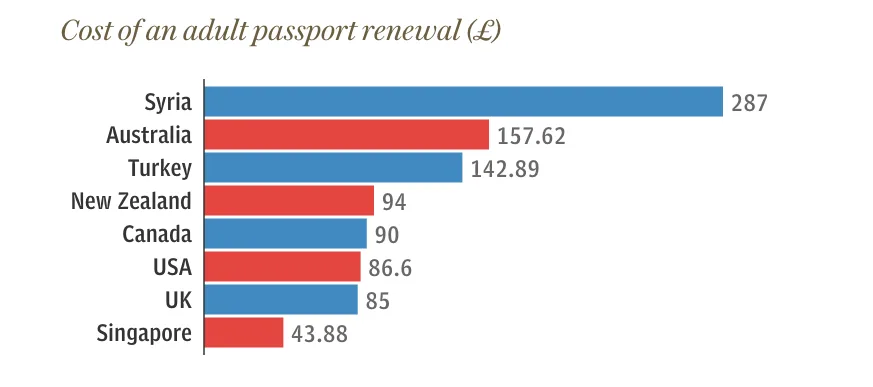 Siapa sangka, Syria yang sedang dilanda perang juga dikira memiliki salah satu pasport paling mahal di dunia, rakyat di negara tersebut dikenakan kos memperbaharui pasport sebanyak £287 pounds iaitu sekitar RM 1512.59