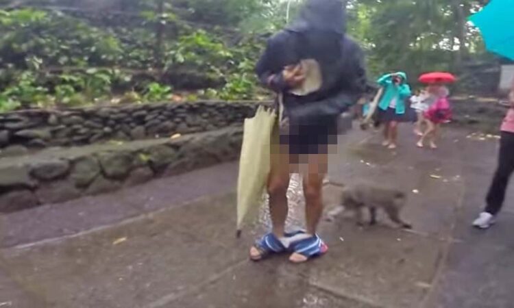 Rakaman pendek, yang dilaporkan sempat diambil ketika mangsa mengunjungi Monkey Forest Ubud di Bali, menunjukkan monyet liar itu melompat ke seorang lelaki dari belakang untuk merebut pisang yang dipegang oleh lelaki tersebut. Monyet itu kemudian menarik turun seluar mangsa menampakkan punggung sehinggakan dia berasa malu pada pengunjung zoo lain.