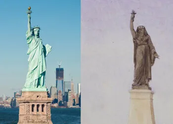 Monumen ikonik yang sangat terkenal di Bandar New York asalnya adalah seorang wanita Arab memakai pakaian Muslim memegang obor. Pendedahan ...