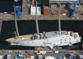 Kapal layar gergasi bernilai $ 450million (RM1.99billion) dilihat telah berlayar dari Pelabuhan Nobiskrug di Jerman petang semalam dalam perjalanannya ke ...