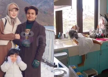 Gelagat anak perempuan kepada pasangan pempengaruh media sosial, Maryam Durian Kimchi dan Ryzal Ibrahim iaitu Rina sedang basuh pinggan di ...