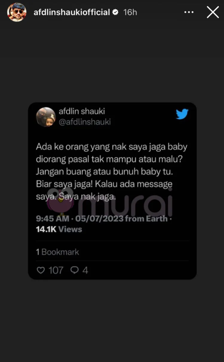 “Jangan buang atau bunuh baby tu. Biar saya jaga! Kalau ada message saya. Saya nak jaga.”-ciapan Afdlin
