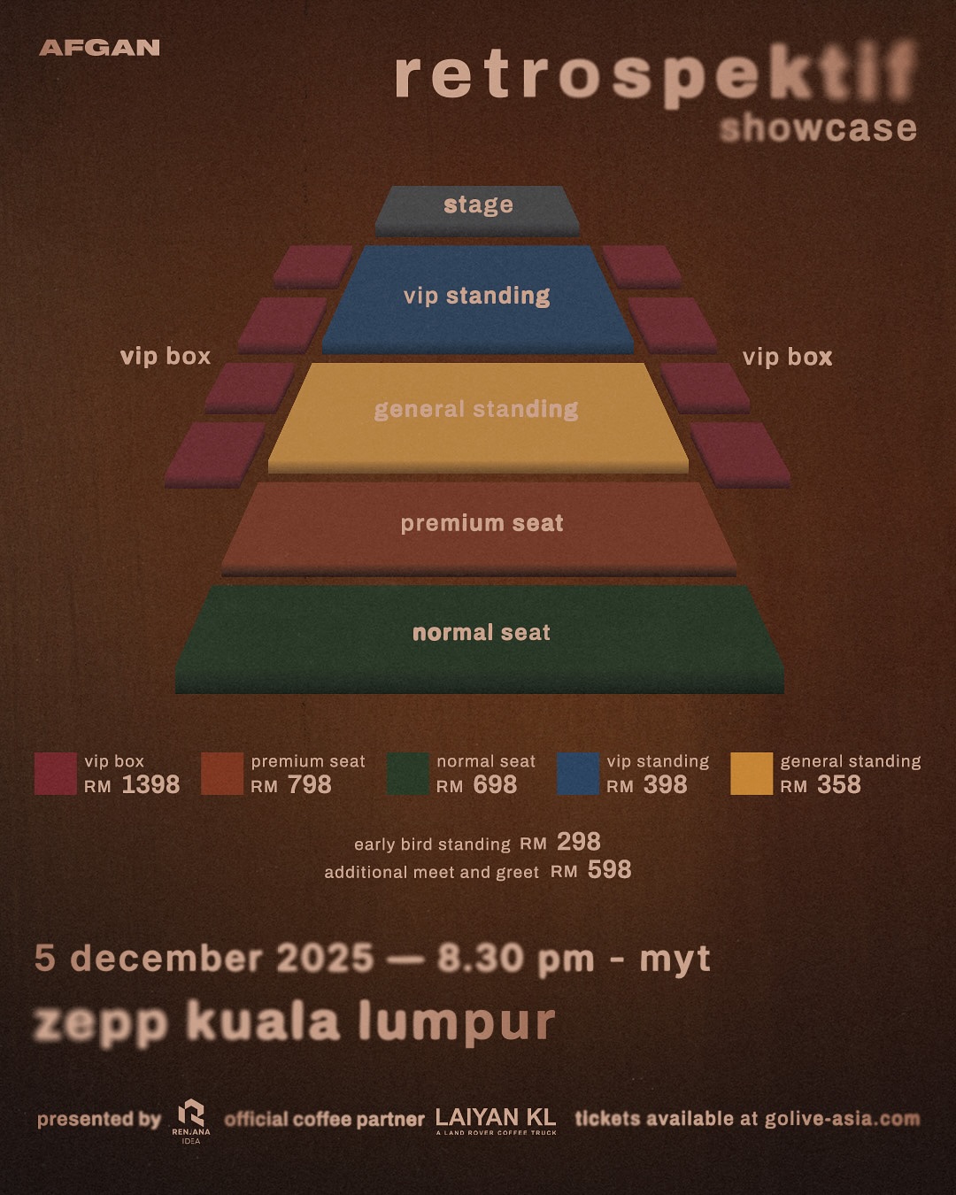 Tiket Afgan Retrospektif Showcase sudah mula dijual bermula 1 Oktober lalu di https://www.golive-asia.com/