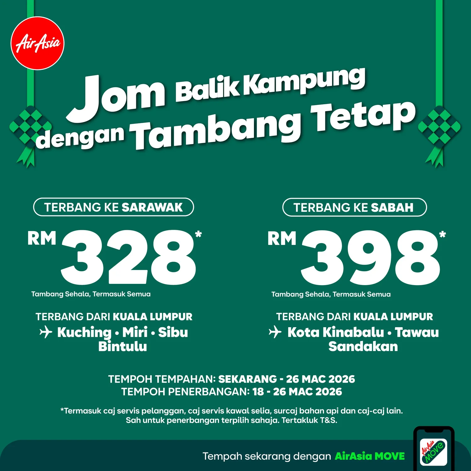 Harga ini sudah termasuk semua caj yang berkaitan. Tiada kejutan di halaman pembayaran. Bagi mereka yang pernah rasa terbeban, terutama warga Sabah dan Sarawak yang bekerja di Semenanjung, harga ini sangat melegakan. Ramai akhirnya boleh merancang awal dan benar-benar pulang pada musim yang sangat bermakna ini.