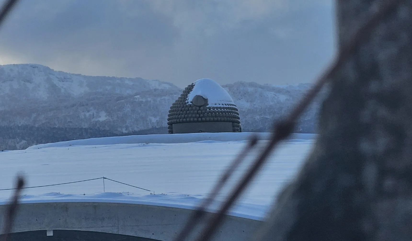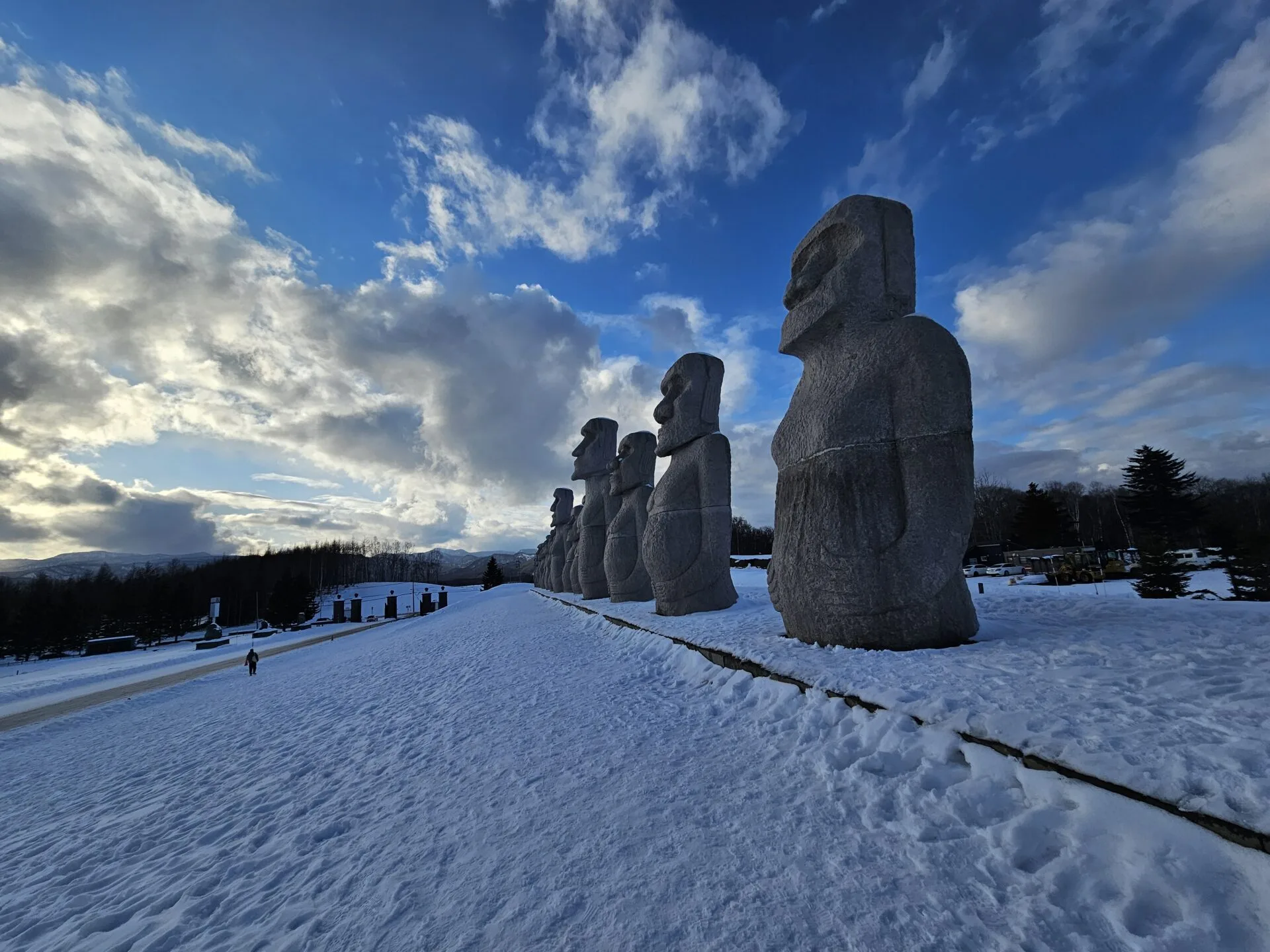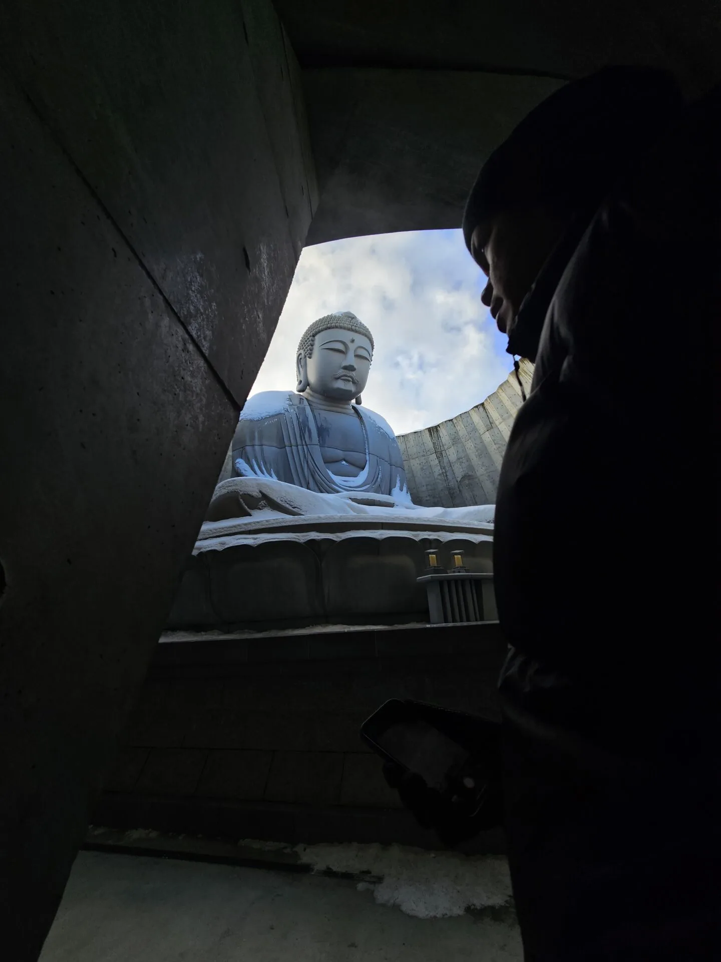 Bayangkan sebuah busut besar yang dilitupi salji. Dari jauh, anda hanya akan nampak bahagian atas kepala patung Buddha yang menjulang melalui perigi bulat di tengah busut tersebut.