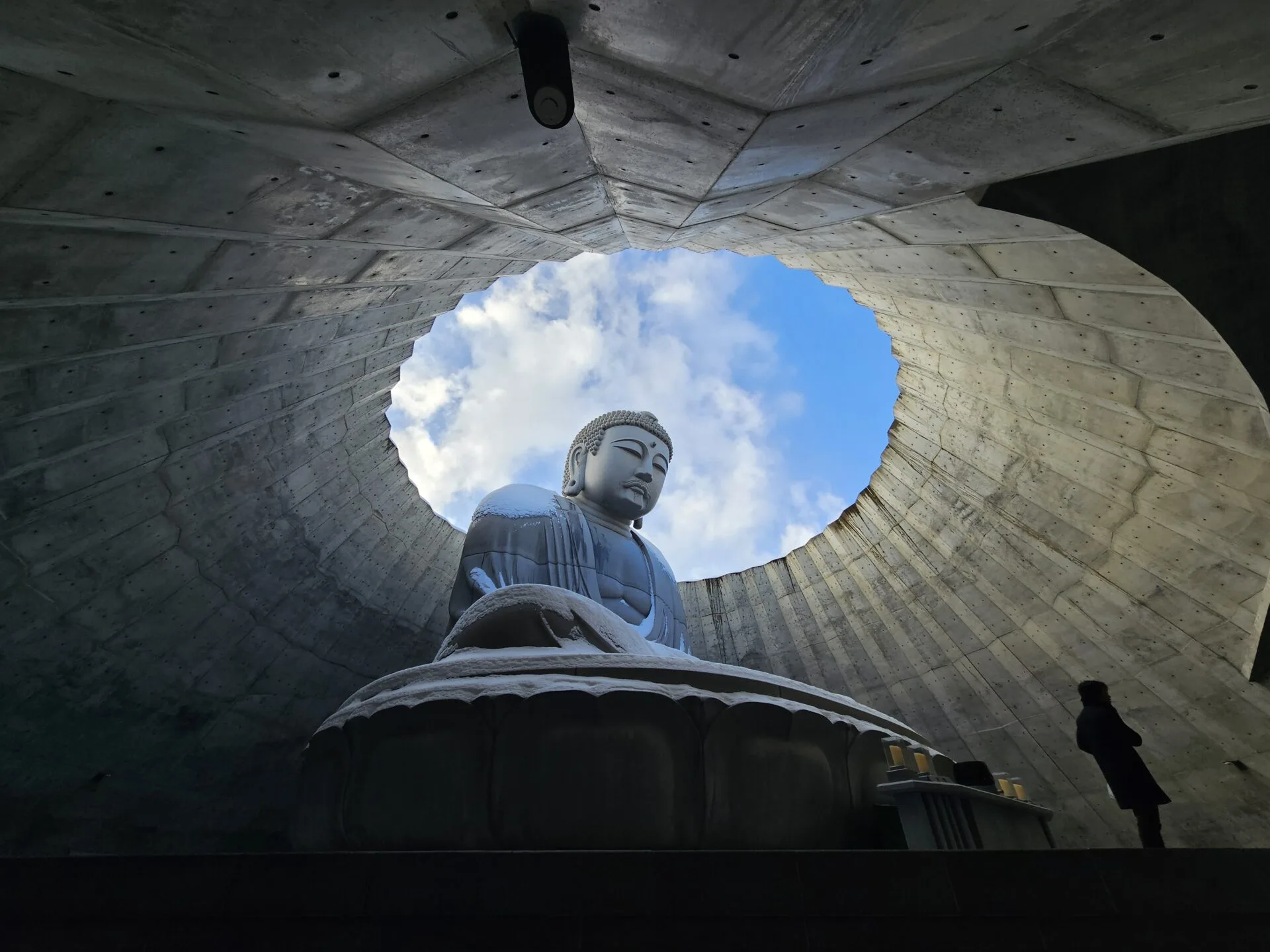 Terowong ini direka untuk membina suasana sunyi dan penuh keheningan. Saat anda melangkah keluar dari terowong, anda akan tiba di sebuah kubah terbuka yang memperlihatkan patung Buddha sepenuhnya, di mana langit di atas menjadi lingkaran cahayanya. Pengalaman ini memberikan rasa kagum dengan seni bina-nya.