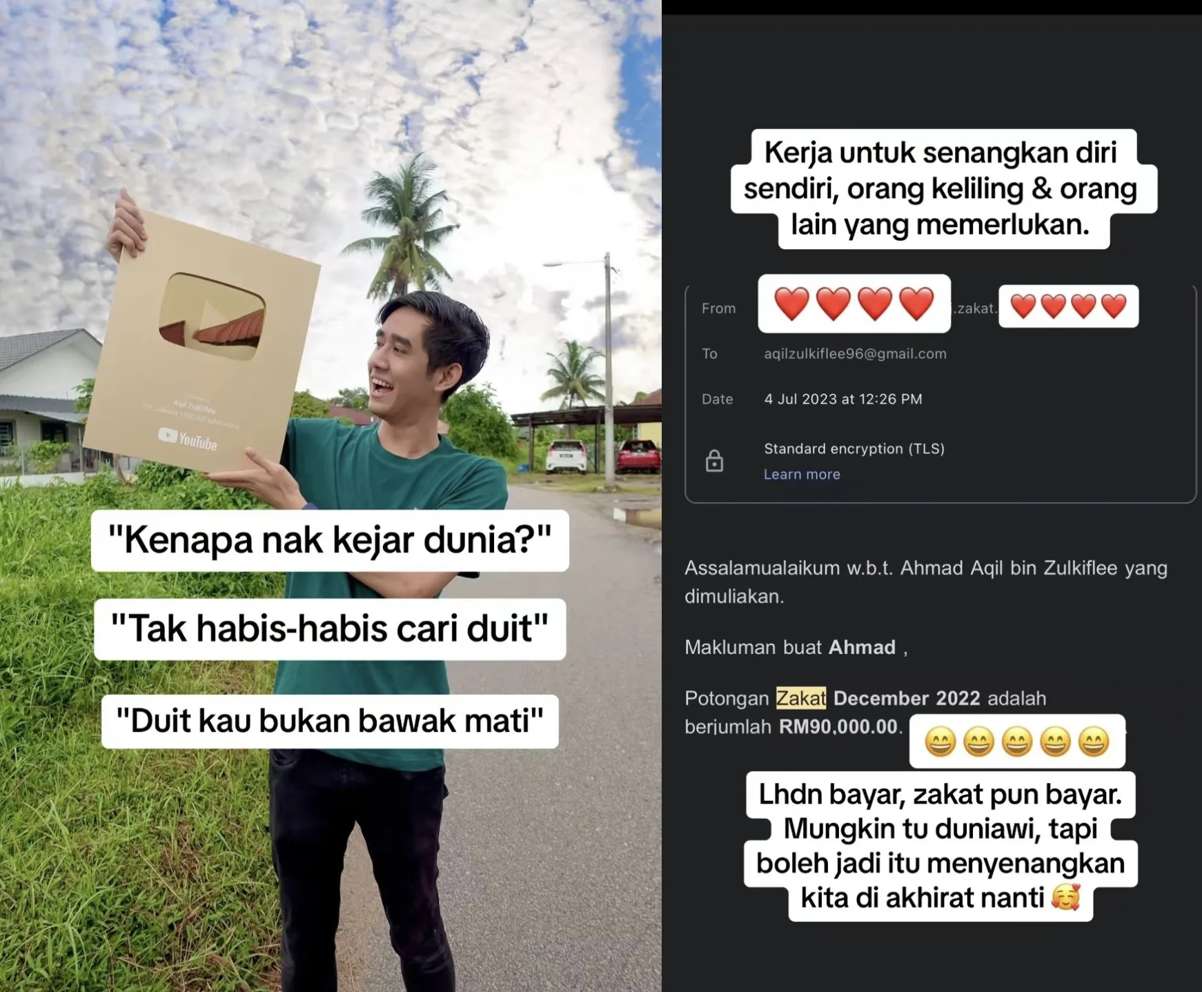 “Lhdn bayar, zakat pun bayar. Mungkin tu duniawi tapi boleh jadi tu menyenangkan kita diakhirat nanti”