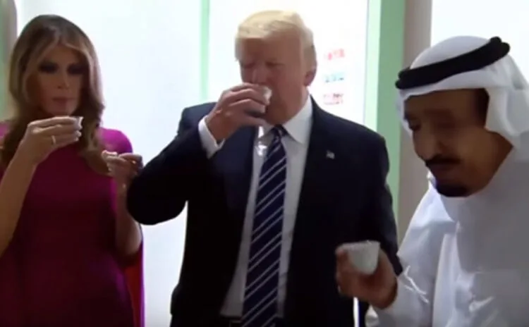 Peristiwa ini terjadi pada Sabtu lepas dalam upacara menyambut Trump di bandar Riyadh. Secara tradisinya, tetamu luar negara disambut dengan secawan kopi. Kopi Saudi terkenal dan popular, lebih popular jika dibandingkan yang ada di AS.