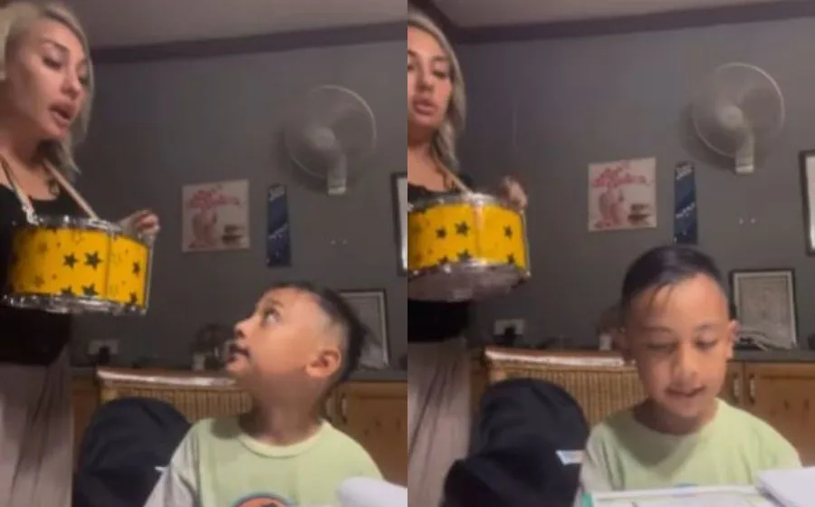 Pelakon Zarina Anjoulie mencuri perhatian warganet apabila berkongsi video memukul gendang sambil membimbing anaknya mengulang kaji pelajaran.