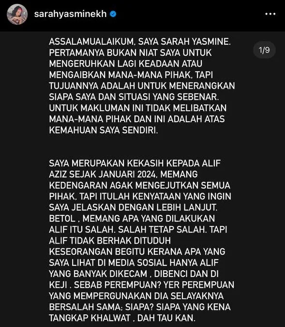 Sarah menjadi sebutan ramai selepas mengaku sebagai kekasih gelap penyanyi Aliff Aziz, yang berani berbuat demikian kepada umum selepas melihat kekasihnya teruk dikecam susulan kontroversi ditangkap khalwat dengan Ruhainies pada 8 Mac lalu.