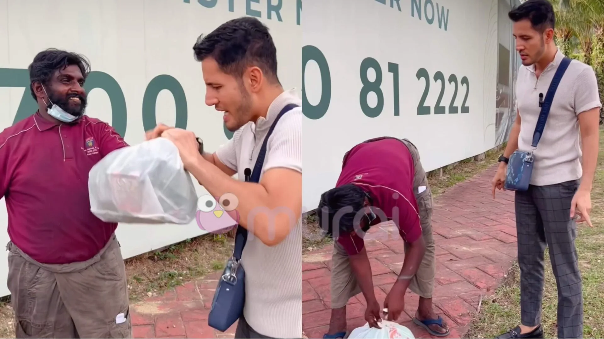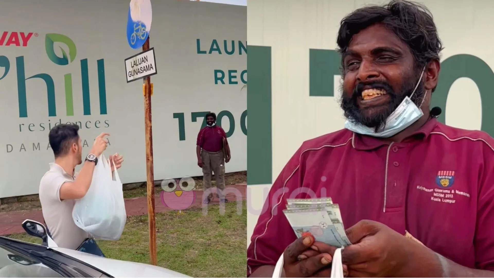 Usahawan yang juga penyanyi itu kemudian mengambil plastik sampah itu lalu memasukkan sedikit wang buat lelaki berkenaan.